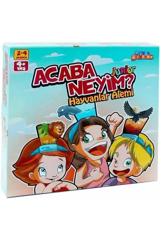 Acaba Neyim? Junior Hayvanlar Alemi; çocukların kafasına takılan karttaki hayvanı, arkadaşlarının verdiği ipuçları ve yapılan hareketlerle tahmin etmeye çalıştığı, bol kahkahalı bir kutu oyunudur. Hızlı kurulur, kolay öğrenilir; ailece ya da arkadaşlarla kısa sürede oyuna başlanır.