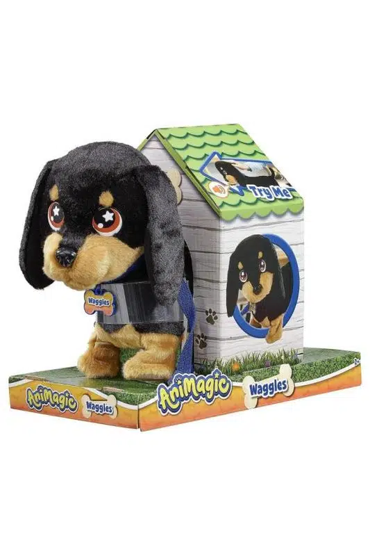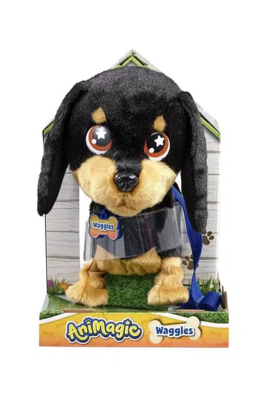 Animagic Sosis Köpek Waggles, gerçekçi sesleri ve hareketleriyle ilgi ve bakıma ihtiyaç duyan sevimli bir interaktif peluş dosttur. Uzun yürüyüşleri çok seven Waggles, mutlu olduğunda sarılmayı ve havlamayı sever.