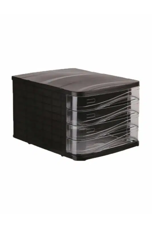 Ark Evrak Rafı 4’lü Çekmeceli Siyah, modern tasarımı ve kullanışlı yapısıyla evraklarınızı, dosyalarınızı ve kırtasiye malzemelerinizi düzenli tutmanın en kolay yolunu sunar.