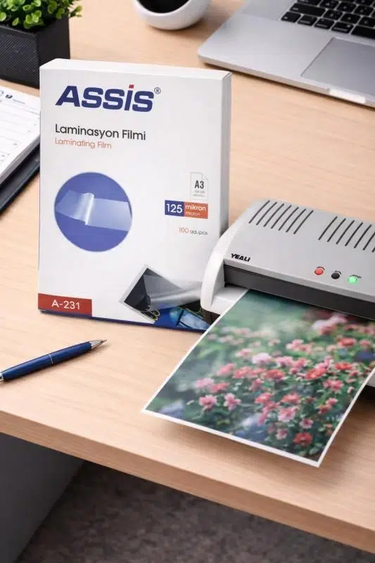 Assis A3 Laminasyon Filmi, evraklarınızı uzun süre koruma altına almak ve daha dayanıklı hale getirmek için geliştirilmiş yüksek kaliteli laminasyon poşetidir. 125 mikron kalınlığı sayesinde belgelerinizi çizilmelere, yıpranmaya, sıvı temasına ve dış etkenlere karşı etkili şekilde korur.