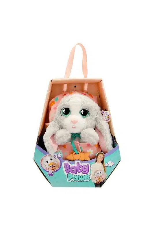 Uyku temalı tasarımı, kolay taşınabilir battaniyesi ve interaktif özellikleriyle 18 ay ve üzeri tüm çocuklar için hem eğlenceli hem de rahatlatıcı bir oyun arkadaşıdır. Baby Paws serisinin diğer yavru hayvanları gibi, bu tavşan modeli de koleksiyon değeri taşır.