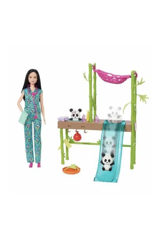 Şefkatli eller, mutlu pandalar! Barbie Yavru Panda Bakımı Seti ile çocuklar hem eğleniyor hem öğreniyor. Renk değiştiren pandalar, suyla oyun keyfini ikiye katlıyor — küçük veterinerler için mükemmel bir hediye!