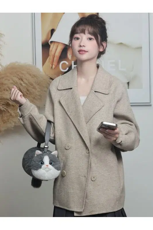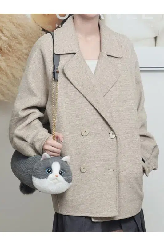 Kedi figürlü yumuşak pelüş dokusu, dikkat çekici mavi gözleri ve şık beyaz askısıyla tarzınızı tamamlar.
