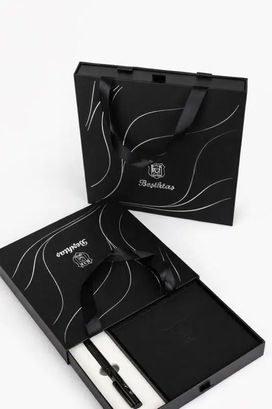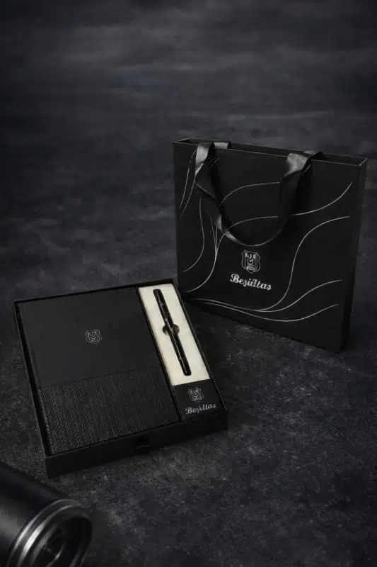 Setin tamamlayıcısı olan Beşiktaş logolu roller kalem, ergonomik gövdesi sayesinde rahat bir yazım sağlar. Ürünler, özel tasarımlı kutulu ve taşıma çantalı ambalaj ile sunulur. Bu sayede hem koleksiyonluk hem de hediye olarak çok şık bir seçenek oluşturur.