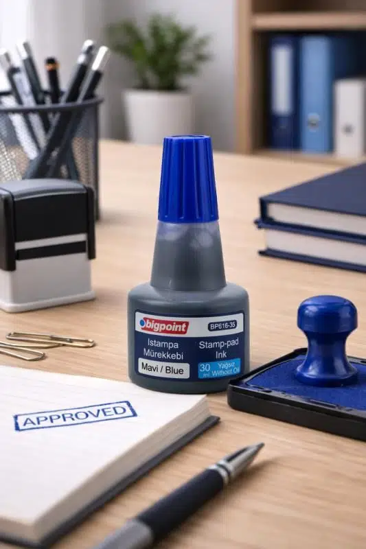 Istampa, kaşe ve fiyat etiket makinelerinin kartuşlarında kullanıma uygun olan bu mürekkep, evrak ve etiketleme işlemlerinde profesyonel ve düzenli bir görünüm elde edilmesine yardımcı olur. Canlı mavi rengi, baskıların kolay fark edilmesini ve net okunmasını sağlar.