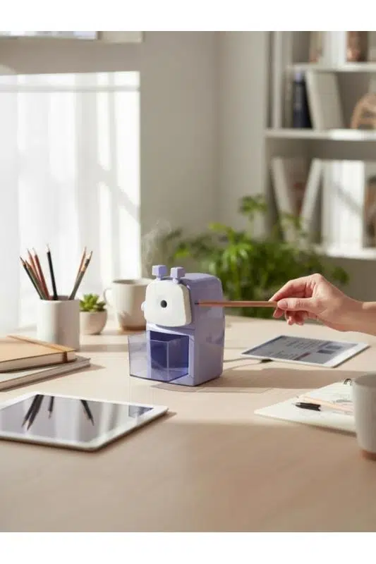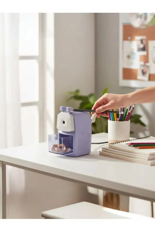 Brons 5 Kademeli Masaüstü Kollu Kalemtraş Mor BR-5504, okul, ofis ve ev kullanımına uygun pratik ve dayanıklı bir kalemtraştır. Çelik alaşımlı bıçak dişlisi sayesinde uzun ömürlü kullanım sunar. Hem klasik kurşun kalemler hem de renkli kalemler için uygundur.