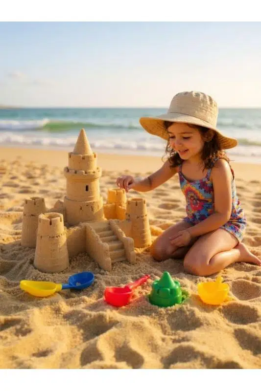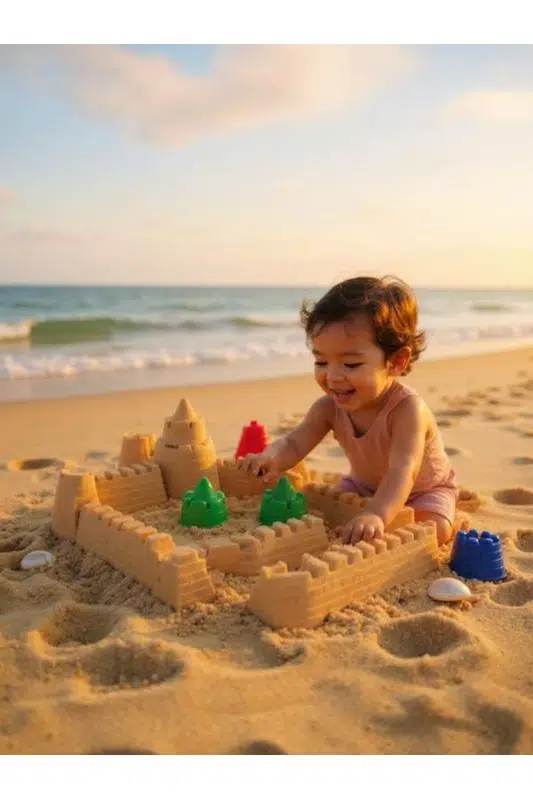 Bu-Bu Oyun Kumu Büyük Havuzlu Kale Kalıplar Seti, çocuklara hayal güçlerini kullanarak kendi krallıklarını kurma fırsatı sunuyor.