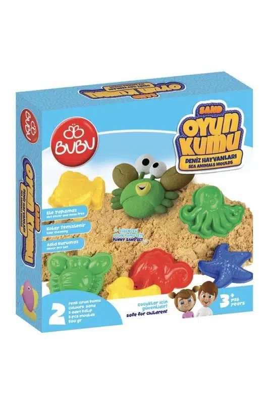 BUBU Oyun Kumu Deniz Hayvanları seti, çocuklara hem eğlenceli hem de öğretici bir oyun deneyimi sunar. Özel formülü sayesinde ele yapışmaz, dağılmaz ve asla kurumaz. Bu sayede tekrar tekrar oynanabilir.