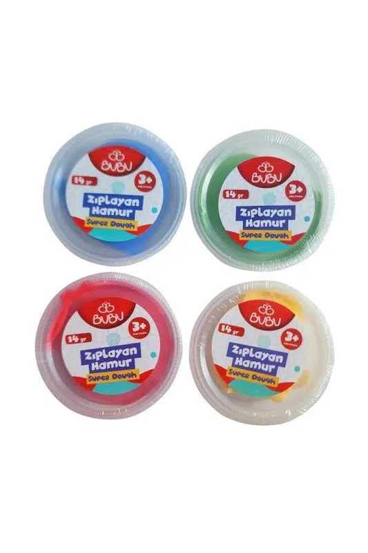 4 renk zıplayan oyun hamuru, çocuklar için eğlenceli ve yaratıcı bir oyun deneyimi sunar.