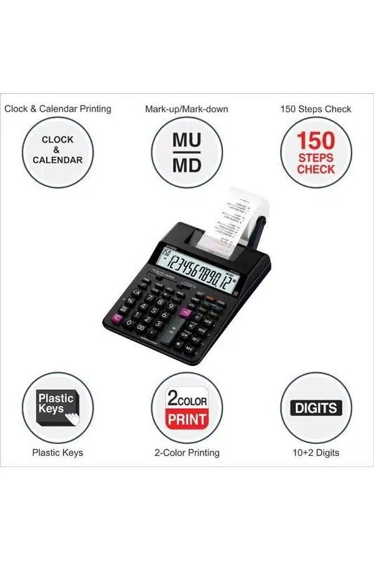 Casio HR-100RC-BK-DC 12 Hane Şeritli Hesap Makinesi