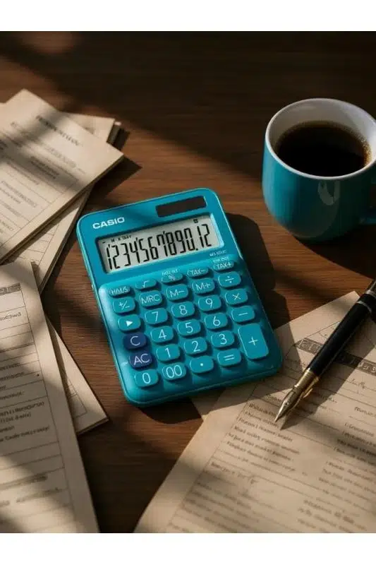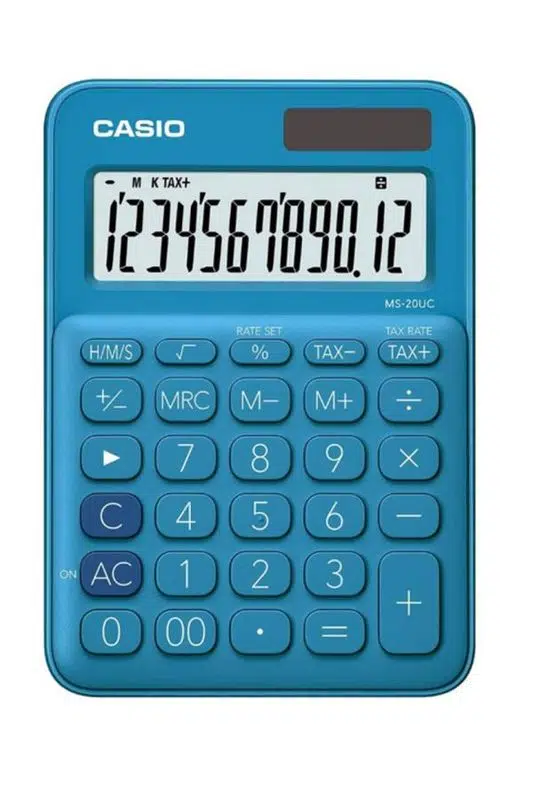 Casio MS-20UC-BU 12 Haneli Mavi Masaüstü Hesap Makinesi – Geniş Ekranlı, Çift Güç Kaynaklı, Şık Tasarım