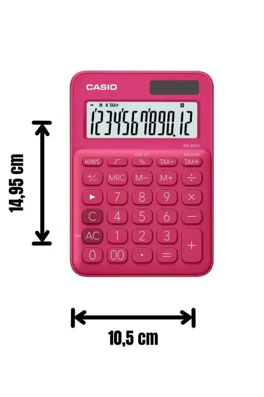 Canlı rengi ve işlevsel tasarımıyla öne çıkan Casio MS-20UC-RD, hem ofis hem de ev kullanımı için ideal bir masaüstü hesap makinesidir. Koyu pembe rengiyle dikkat çekerken, 12 haneli geniş ekranıyla hesaplamaları kolayca takip etmenizi sağlar.