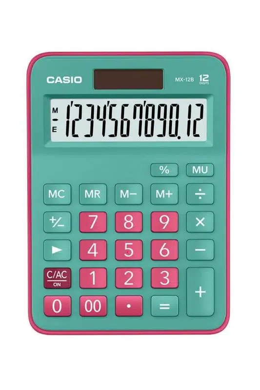Casio MX-12B-GNRD, klasik Casio güvenilirliğini canlı renklerle buluşturan şık ve enerjik bir masaüstü hesap makinesidir.