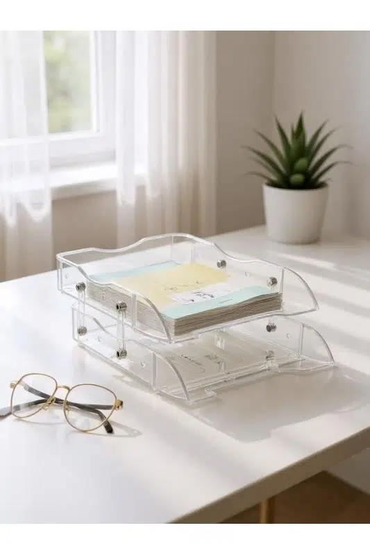Şeffaf tasarımı, masa üzerinde ferah ve sade bir görünüm sunarken, kaliteli plastik malzemesi uzun ömürlü kullanım sağlar.