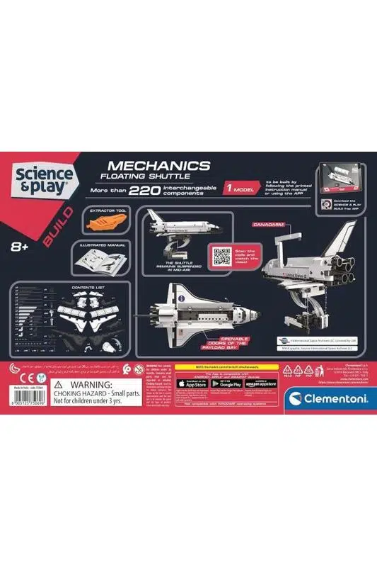 Clementoni Bilim ve Oyun: NASA Uzay Mekiği ile çocuklar kendi süper gerçekçi uzay gemilerini inşa ederek uzayın gizemli dünyasına adım atıyor. Süzülme yanılsaması veren özel binek ve açılabilen kapılar sayesinde oyun deneyimi çok daha gerçekçi ve heyecanlı hale geliyor.
