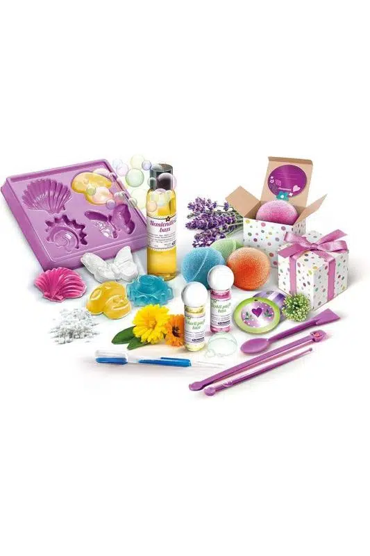 Kokulu sabunlardan duş jeline, el sabunundan banyo bombalarına kadar birçok farklı ürün hazırlamaya imkân tanıyan set; güvenli içerikleri ve resimli adım adım kılavuzu ile çocukların kendi başına deney yapabilmesini destekler. Eğlenerek öğrenmeyi teşvik eden bu laboratuvar, bilimsel merakı artıran ideal bir aktivite sunar.