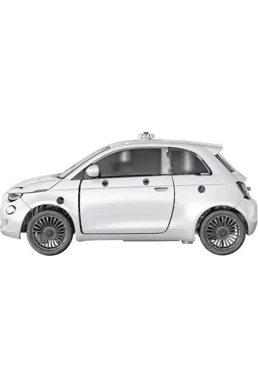 Ve işte karşınızda Fiat 500e! 210’dan fazla değiştirilebilir parçasıyla ona söyleyecek söz yok. Dikkatle ve sabırla bu parçaları doğru bir şekilde birleştirebilen herkes günün sonunda bir 500e’ye sahip olabilir. Ona oyuncak demek haksızlık; o bir tasarım harikası. Her bir parçası son derece detay ve teknik tasarıma sahip olduğu için gerçek halinden bir farkı yok. Elektrikli 500e’den ilhamla tasarlanan bu araba, USB kablo aracılığıyla şarj edilebilen batarya ile çalışmaktadır.