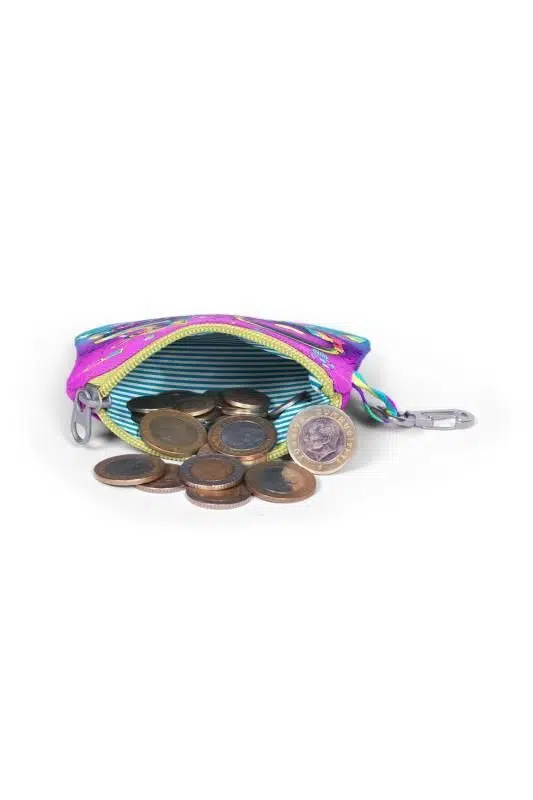 Tek bölmeli, fermuarlı bozuk para cüzdanı.