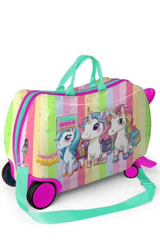 Coral High Kids Renkli Unicorn Desenli Otur-Çek Çocuk Valizi 16355