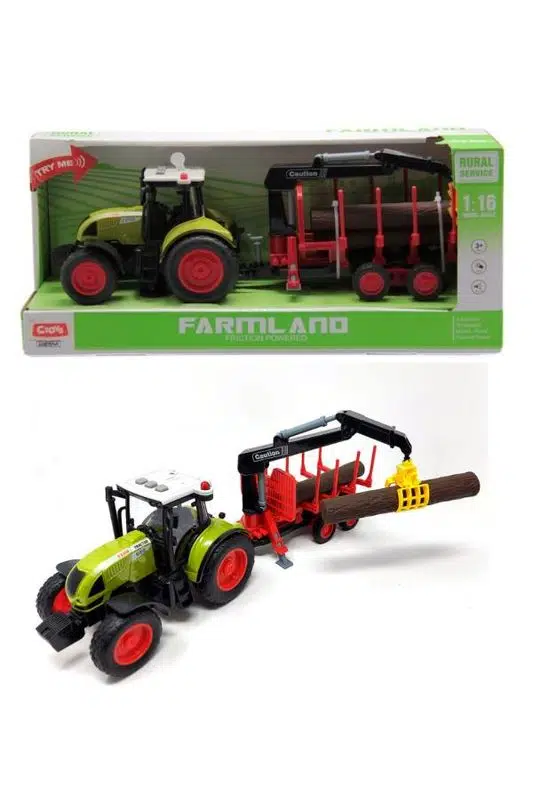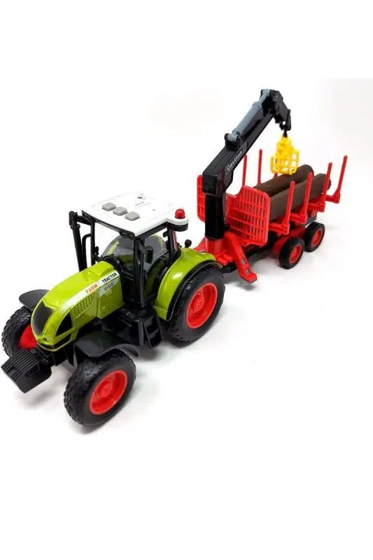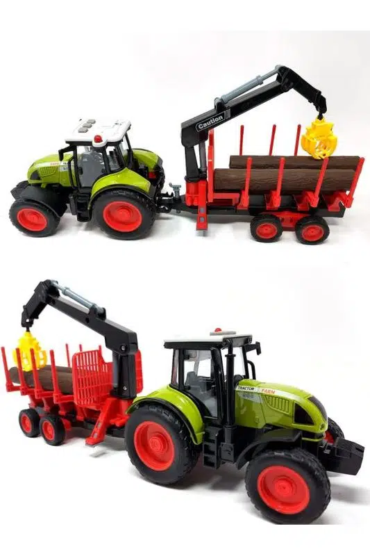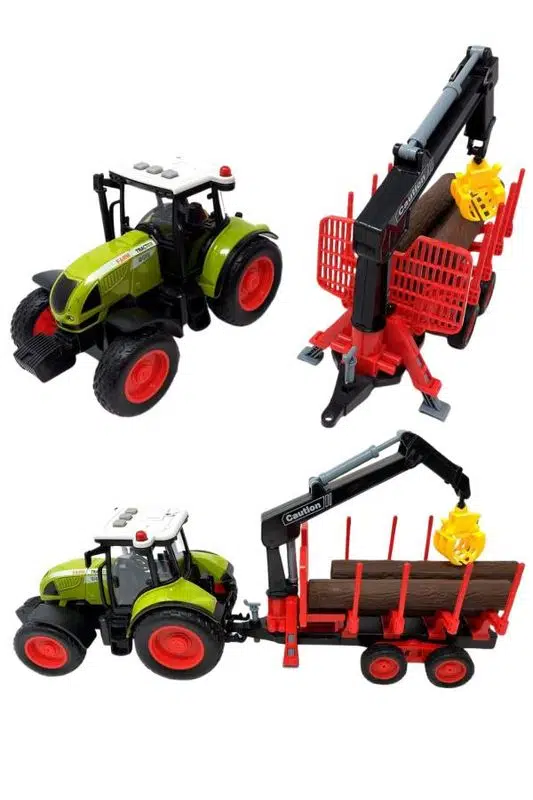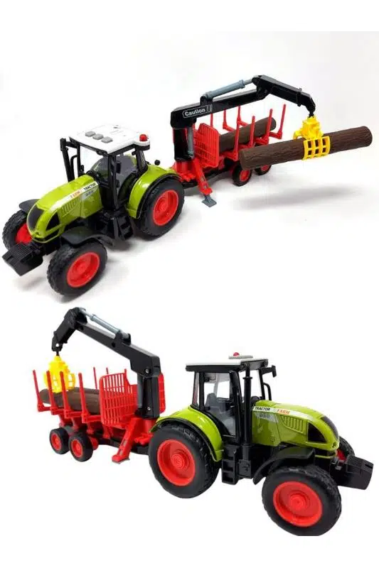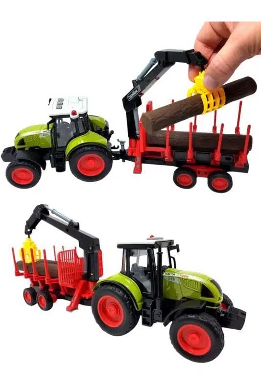 Set içeriği: Traktör + römork + 4 ağaç gövdesi