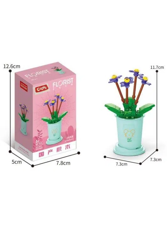 Ctoys Çiçek Blokları 8814-1 Saintpaulia Ionantha Wendl, 6 yaş ve üzeri çocuklar için tasarlanmış, yaratıcılığı ve inşa etme becerilerini destekleyen mini boyutlu bir çiçek yapı blokları setidir. 62 parçadan oluşan bu set, çocuklara keyifli ve pratik bir yapım deneyimi sunar.