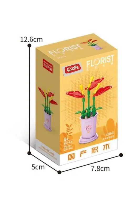 Ctoys Çiçek Blokları 8814-3 Anthurium Scherzerianum, 6 yaş ve üzeri çocuklar için tasarlanmış, yaratıcılığı ve inşa etme becerilerini destekleyen kompakt bir çiçek yapı blokları setidir. 29 parçadan oluşan bu set, çocuklara kısa sürede tamamlanabilen, eğlenceli bir yapım deneyimi sunar.