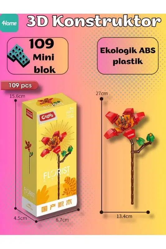 Canlı renkleri ve estetik çiçek formu sayesinde ortaya çıkan tasarım, yalnızca eğlenceli bir oyun değil; aynı zamanda dekoratif bir üründür. Yapımı kolay olan çiçek yapı blokları, tamamlandığında her türlü vazo ile uyum sağlar ve ev ya da çalışma alanlarına şık bir dokunuş katar.