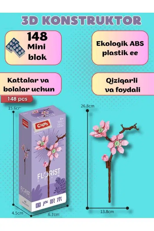 Ctoys Çiçek Blokları 9095-9 Peach Blossom, 6 yaş ve üzeri çocuklar için tasarlanmış, yaratıcılığı ve inşa etme becerilerini destekleyen özel bir çiçek yapı blokları setidir. 148 parçadan oluşan bu set, çocuklara detaylı ve keyifli bir yapım süreci sunar.