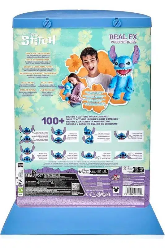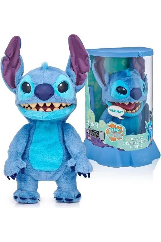 Real FX Disney Stitch Puppet Etkileşimli Oyuncağını tanıtıyoruz, 45 cm uzunluğunda, Stitch'in eğlenceli kişiliğini yakalamak için 100'den fazla aksiyon ve ses kombinasyonuna sahip, keyifli bir animatronik oyuncak! Göz kırpan gözleri, hareket eden ağzı ve dokunma sensörleriyle Stitch, dokunuşunuza ve sesinize yanıt vererek sevimli karakterini hayata geçiriyor!