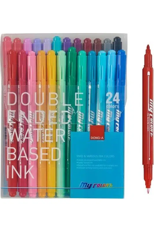 Dong-A My Color Çift Taraflı Fırça Uçlu Keçeli Kalem 24 Renk
