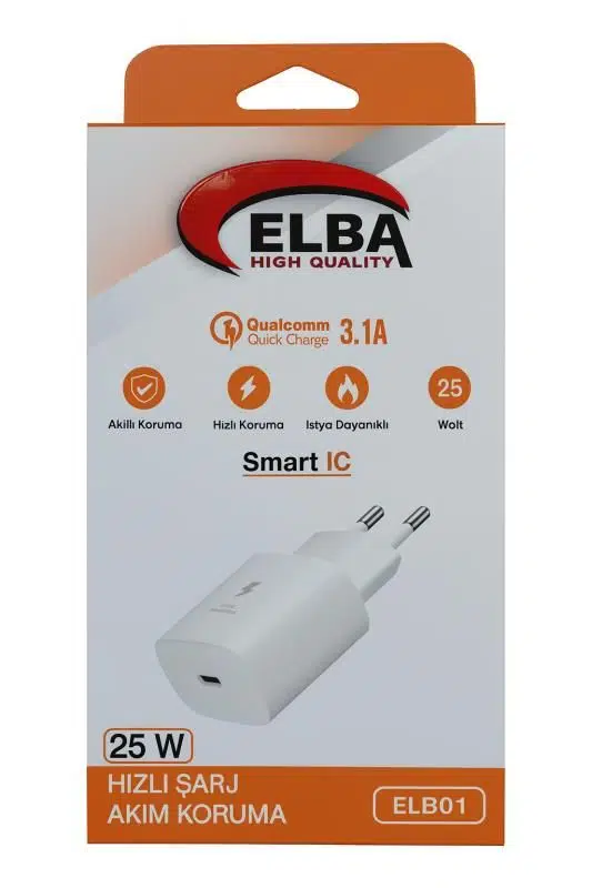 Elba ELB01-25WPD Beyaz 25W USB-C Şarj Kafa, hızlı, güvenli ve dayanıklı bir şarj çözümü arayanlar için ideal seçimdir.