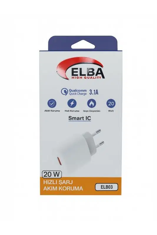 Elba ELB03-20USB, güçlü 20W çıkış desteği ve Qualcomm Quick Charge 4.0 teknolojisi ile cihazlarınızı çok daha hızlı ve güvenli bir şekilde şarj etmenizi sağlar. Akıllı koruma sistemi sayesinde aşırı akım, gerilim ve ısınmaya karşı cihazlarınızı korur, günlük kullanımda maksimum güvenlik ve verimlilik sunar.