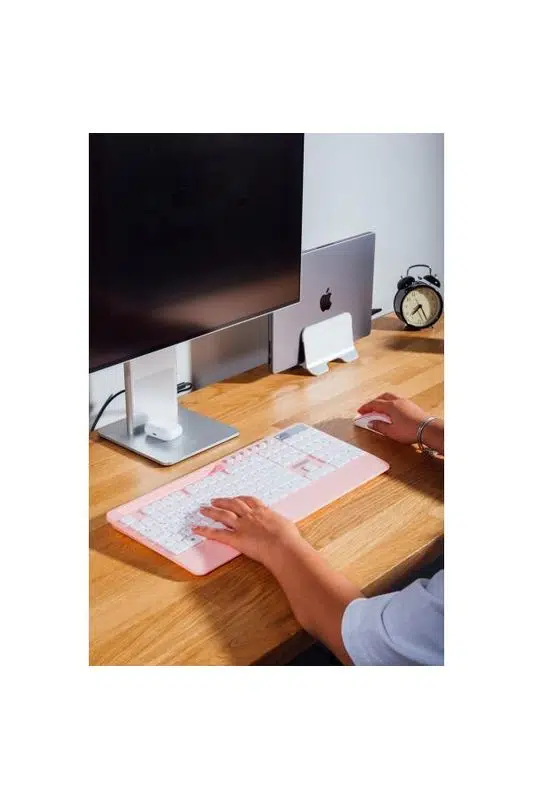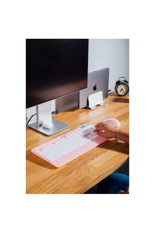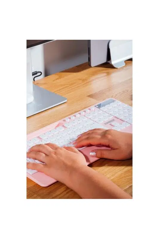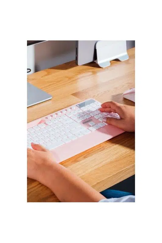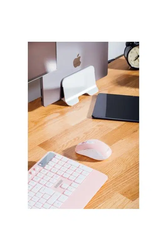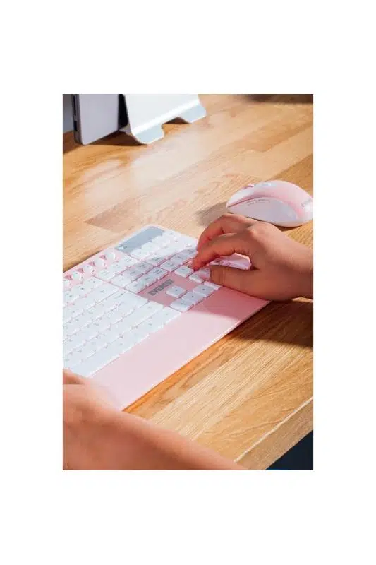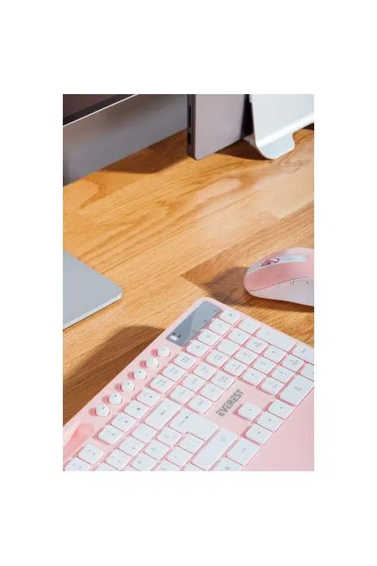 Masanı renklendir, konforu artır! Everest KM-9676 Klavye & Mouse Seti, pembe detayları, standlı yapısı ve sessiz tuş konforuyla hem şık hem fonksiyonel bir seçim. Çalışırken keyfin, tasarımın kadar güzel olsun!