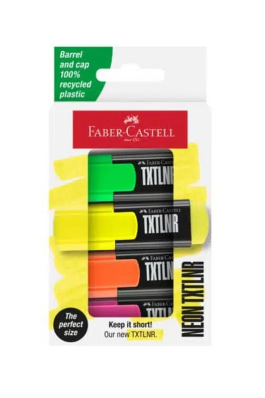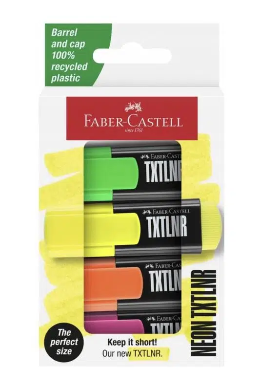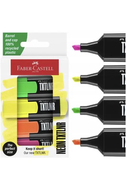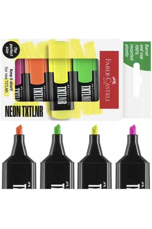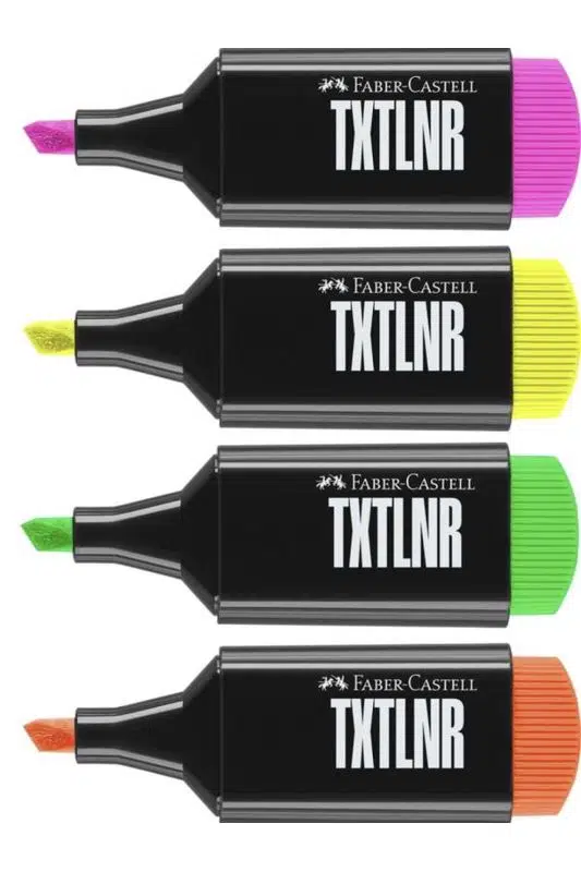 Faber-Castell TXTLNR SF fosforlu kalem seti; sarı, turuncu, pembe ve yeşil renkleriyle notlarınızı düzenlemenin en renkli yolunu sunar. 1-3 mm keski ucu sayesinde hem ince hem kalın çizimler yapabilir, metinlerinizi vurgularken netlik sağlayabilirsiniz.