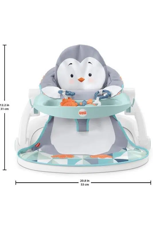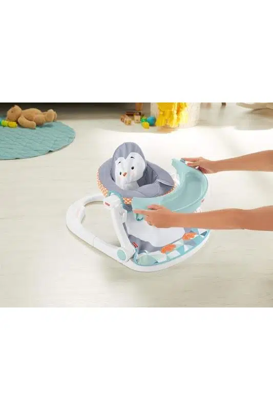 Çıkarılabilir mama tepsisi ve bağlanabilen aktivite oyuncakları ile hem beslenme hem de oyun zamanını bir arada sunar. Hışırtılı ve basıldığında ses çıkaran penguen kanatları, bebeğin duyusal gelişimini destekler. Katlanabilir yapısı sayesinde kolayca saklanabilir ve taşınabilir.
