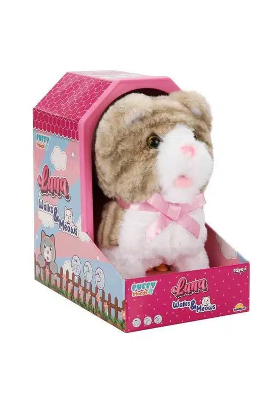 Gerçek bir kedi gibi yürüyen, ileri–geri hareket eden, ağzını oynatan ve eğlenceli sesler çıkaran bu sevimli oyuncak, çocukların en yakın oyun arkadaşlarından biri olmaya aday. Yumuşacık tüyleri sayesinde hem oynaması hem de sarılması çok keyiflidir.