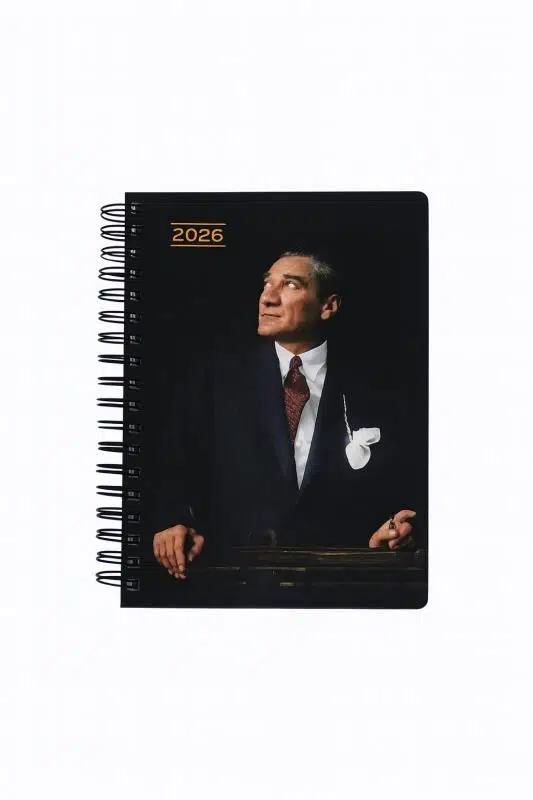 Cumhurbaşkanı Atatürk görselli, günlük kullanım için tasarlanmış, 1. sınıf hamur kâğıtlı, sağlam spiralli ajanda. Önemli günler, aylık plan çizelgesi ve yapışkan sticker sayfası ile yıl boyu düzeninizi koruyun.