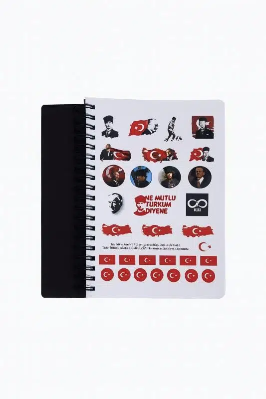 Kutu İçeriği: 1× Ajanda, 1× Atatürk temalı yapışkan sticker sayfası