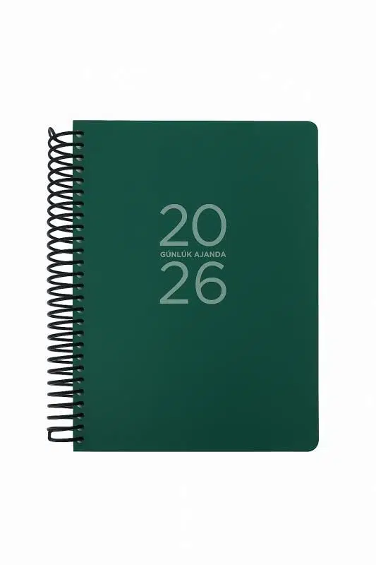 2026 yılı için hem iş hem günlük kullanımda ihtiyacınız olan tüm planlamayı tek bir ajandada toplar. Şık yeşil sert kapağı, dayanıklı spiralli yapısı ve düzenli iç sayfa tasarımıyla yıl boyunca rahat kullanım sağlar. Günlük notlar, toplantılar, hatırlatmalar ve hedeflerinizi kolayca organize edebilmeniz için tasarlanmıştır.