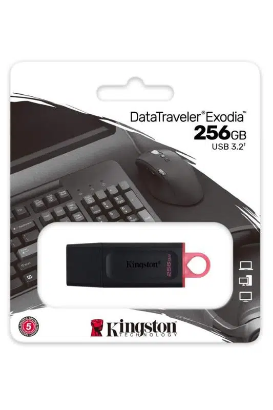 Kingston DataTraveler Exodia 256GB, yüksek hızlı USB 3.2 Gen 1 teknolojisiyle büyük dosyaları saniyeler içinde aktarmanı sağlar. 256GB kapasitesiyle fotoğraf, video, belge ve müzik dosyalarını güvenle depolayabilir; hem profesyonel hem kişisel kullanım için ideal bir çözüm sunar.