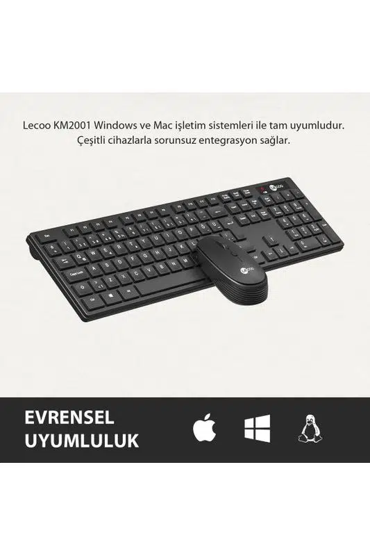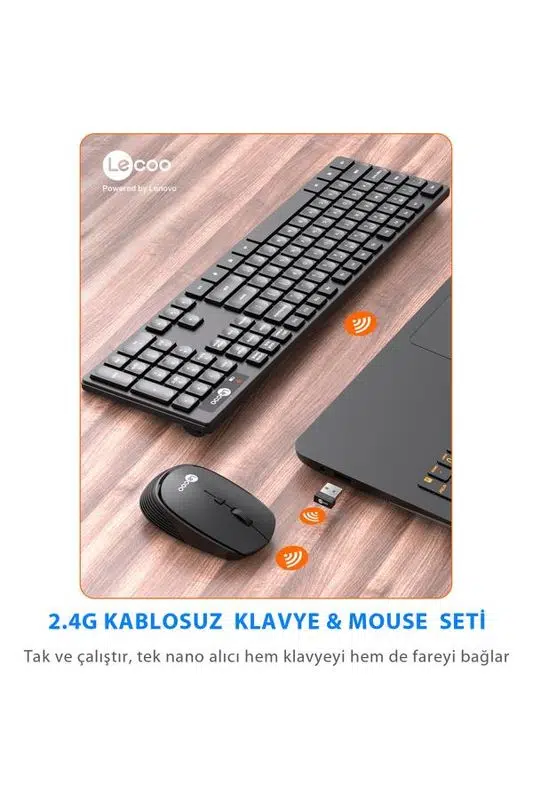 Lecoo KM2001 Kablosuz Türkçe Q Siyah Klavye & Mouse Set, tak çalıştır özelliği sayesinde hemen kullanıma hazırdır. USB alıcısını takın ve kablosuz bağlantıyı keyfini çıkarın. Sürücü kurmaya veya karmaşık kurulumlara gerek yok!