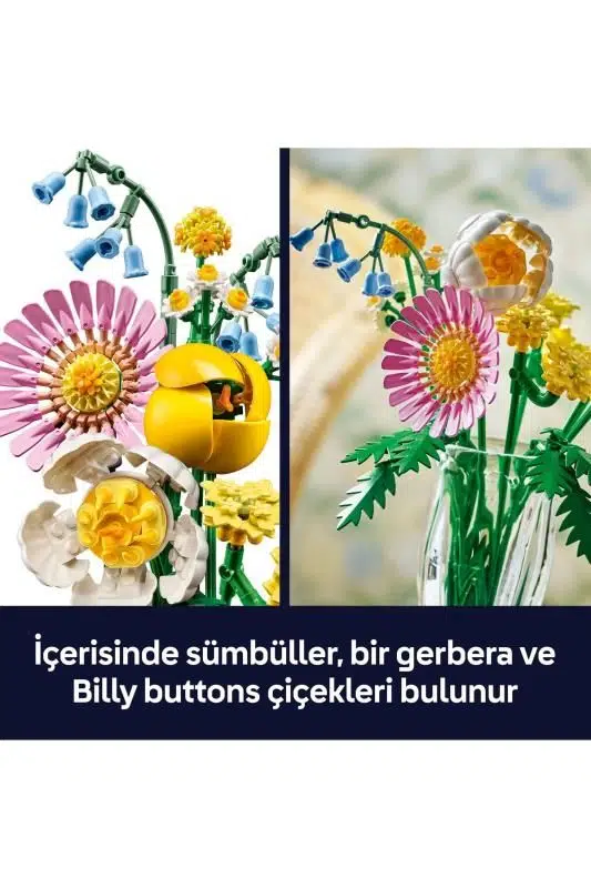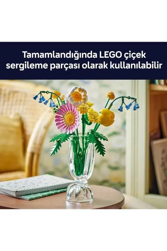 LEGO Botanicals Küçük Sarı Buket (10347), 9 yaş ve üzeri çocuklar ile çiçek severler için tasarlanmış, neşeli ve yaratıcı bir yapım deneyimi sunar. Pastel tonları ve doğadan ilham alan detaylarıyla bu set, yapıldıktan sonra uzun süre severek sergilenebilecek dekoratif bir çiçek buketine dönüşür.
