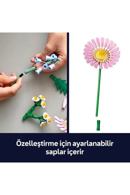 Ayarlanabilir saplara sahip bahar çiçekleri sayesinde çocuklar kendi aranjmanlarını oluşturabilir, yaratıcılıklarını geliştirirken aynı zamanda estetik bir sonuç elde eder. Hem oyun hem de dekor amacıyla kullanılabilen bu buket, her ortama sıcak ve pozitif bir hava katar.