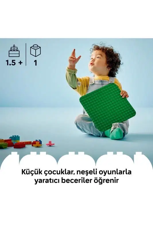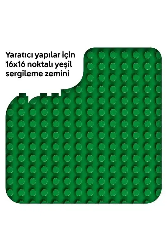 LEGO DUPLO Yeşil Yapım Plakası, minik LEGO ustalarının hayal gücünü özgür bırakacağı sağlam bir oyun zeminidir! 16x16 çıkıntılı yeşil taban, 18 ay ve üzeri çocuklara uygun boyutlarıyla hem güvenli hem de kullanışlıdır.