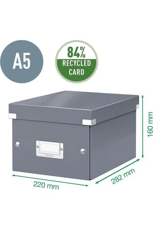 A5 belgeler için evrensel küçük saklama ve taşıma kutusu. Sağlam koruma için lamine yüzeyli ve metal köşe elemanlı sağlam, birinci sınıf kartondan yapılmıştır. Etiket tutucusu dizinlemeyi kolaylaştırır. Kullanılmadığında yerden tasarruf sağlayan saklama için katlanabilir. Bu çağdaş tasarım her ofiste harika görünür.