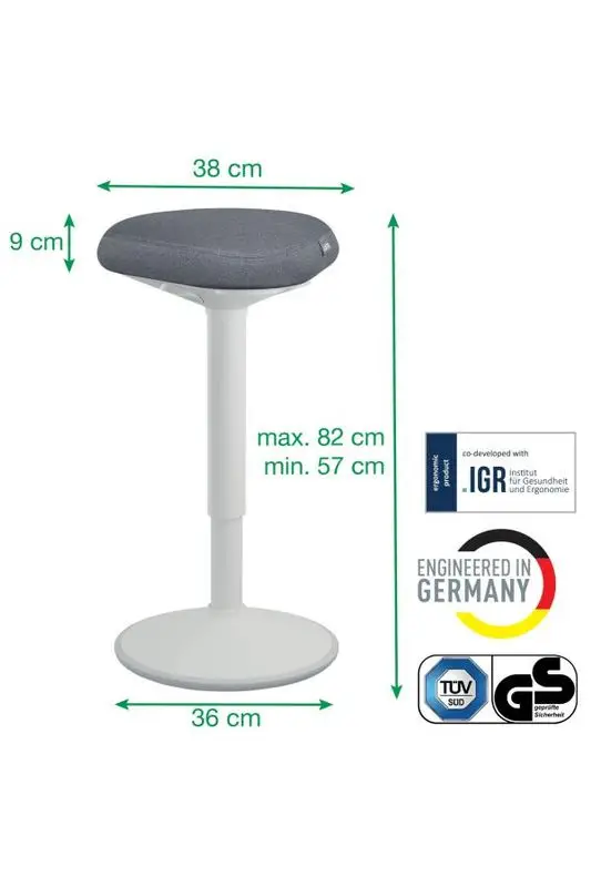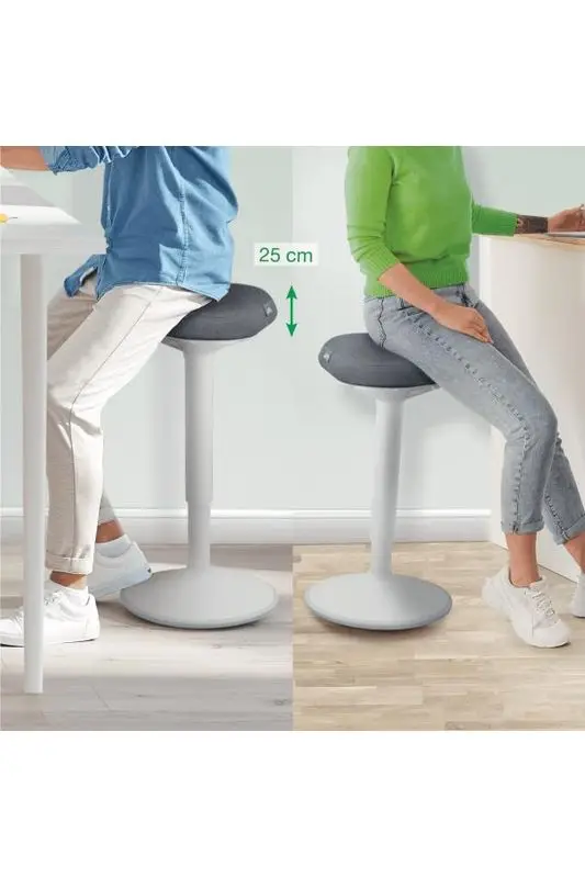 Leitz Ergo Activesit standing Tabure, sağlam ergonomik destek çekirdeğine sahip benzersiz bir Çift Yoğunluklu Köpük (DDF) konfor koltuğuna sahiptir.