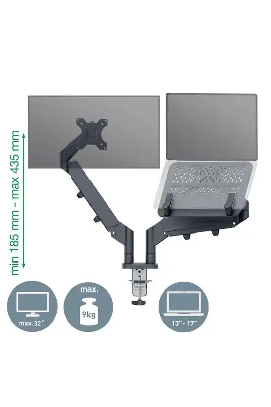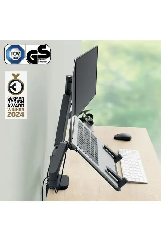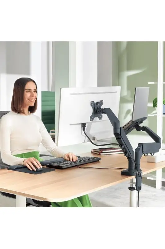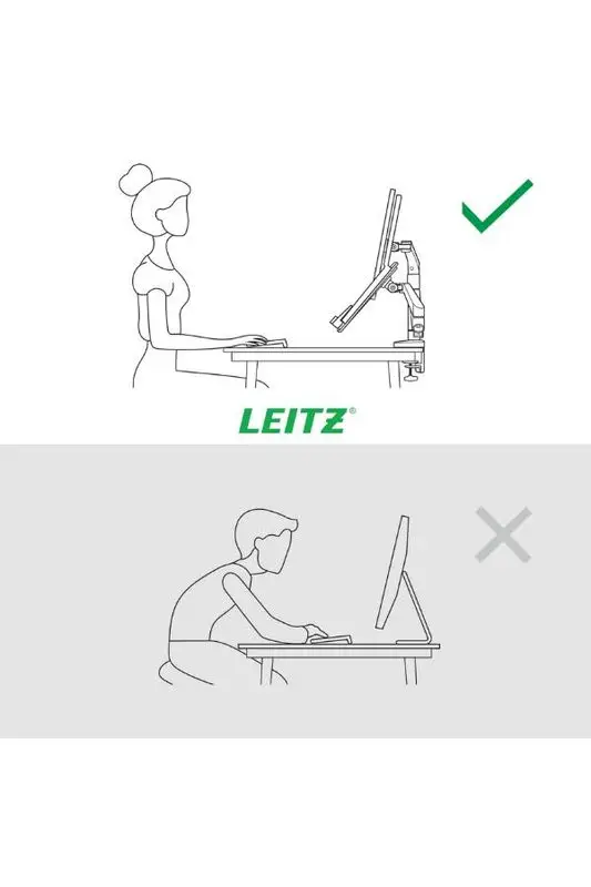 Leitz Yerden Tasarruf Sağlayan Çift Monitör ve Dizüstü Bilgisayar Kolu, monitör ve dizüstü bilgisayarın yüksekliği doğru ve önerilen şekilde ideal ergonomik konuma ayarlandığında duruş üzerinde olumlu bir etkiye sahiptir, uygun göz hizalamasını destekler ve boyun ve omuz rahatlığını destekler. Monitör ve dizüstü bilgisayar standı tüm yükseklik ve açılarda sabit kalır ve yatay ve dikey mod arasında kolayca değiştirilebilir. Tasarımı, alanın sınırlı olduğu yerler için idealdir ve değerli masaüstü alanını boşaltacaktır. Sağlıklı yaşamı teşvik etmek ve üretkenliği artırmak için ergonomik olarak tasarlanmıştır.