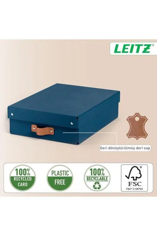 Leitz Puro Saklama Kutusu Kapaklı Orta Yükseklik 8L 2’li Paket – %100 Geri Dönüştürülmüş Karton (Mavi)