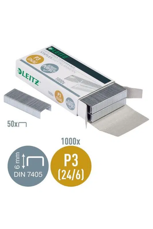 24/6 güçlü çelik zımba teli. En iyi performans için Leitz zımba ile kullanın.