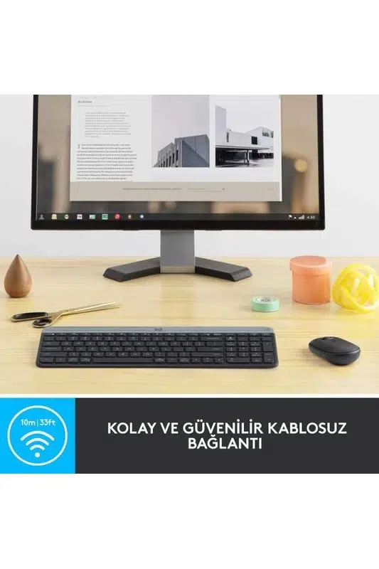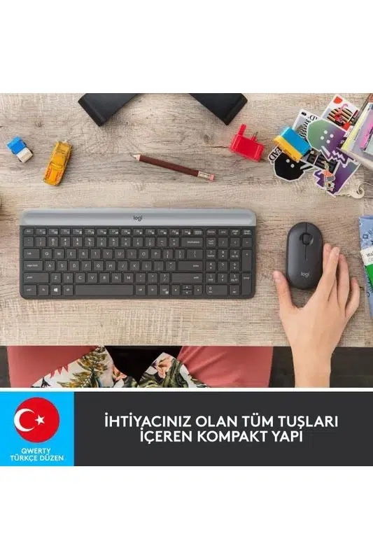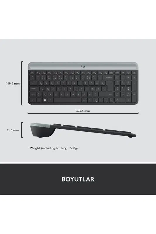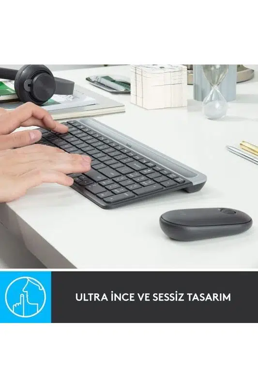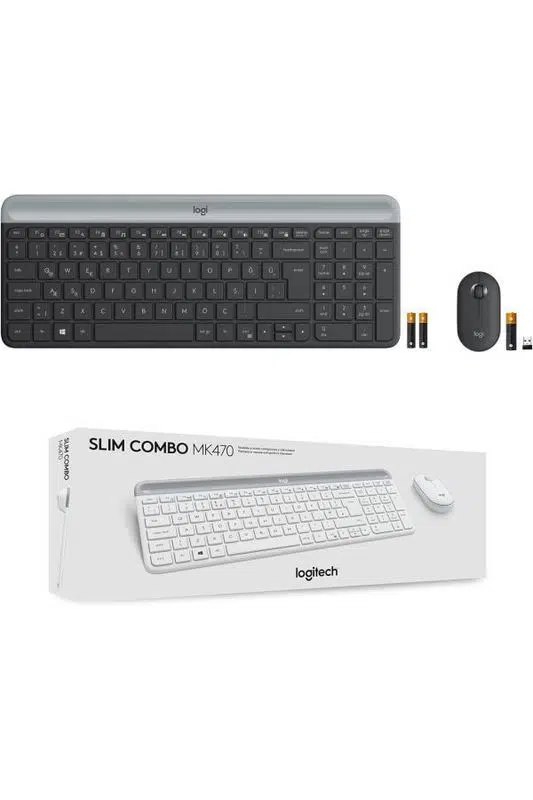 Logitech MK470 Slim Combo, modern çalışma alanları için tasarlanmış ultra ince, kompakt ve sessiz bir kablosuz klavye ve mouse setidir. Düşük profilli tasarımı, sade çizgileri ve yer tasarrufu sağlayan yapısıyla hem ev hem ofis ortamlarına şık bir uyum sağlar.